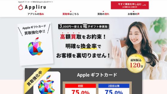 ![]() ![]() エアギフト | 81.0〜82.0% | 最短5分 | 1円〜上限なし | × | 24時間営業(年中無休) | 無料 |