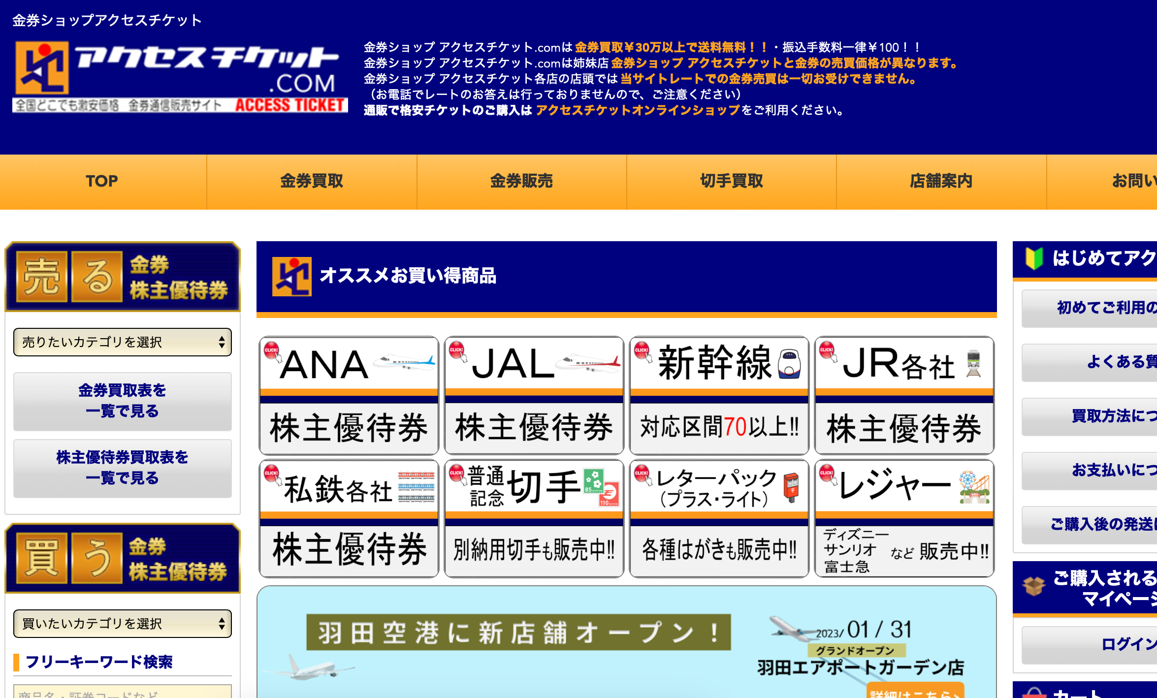 アクセスチケットは金券の買取だけでなく販売にも力を入れている企業です。