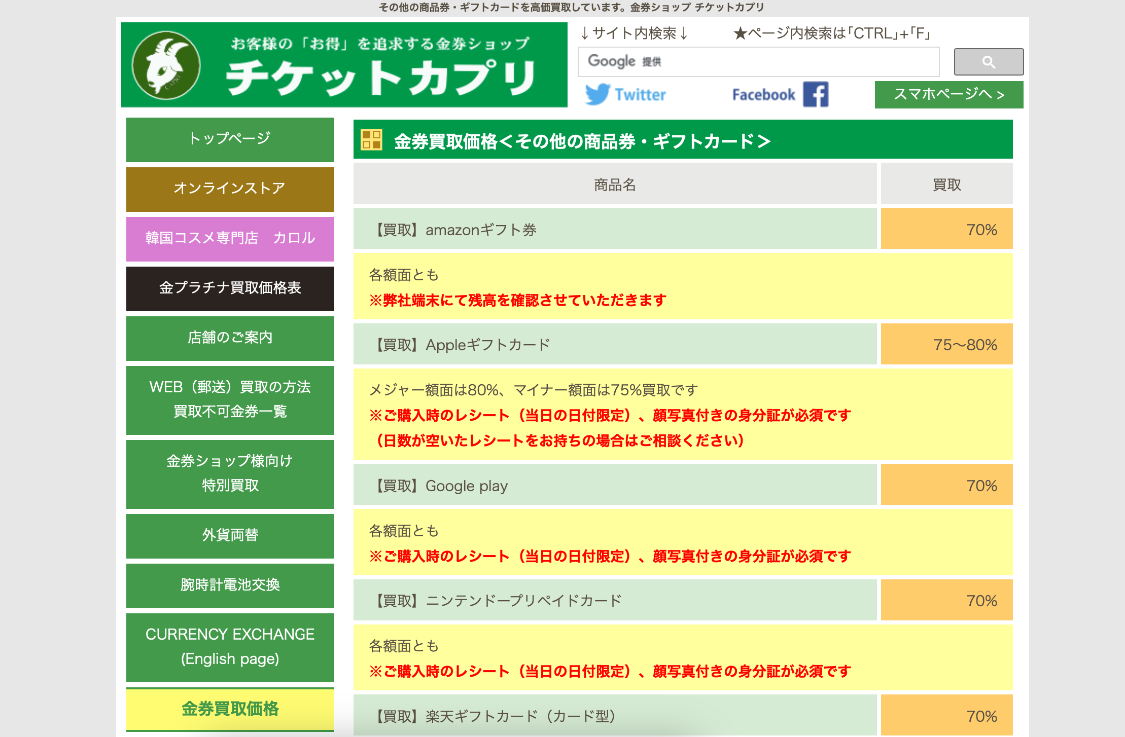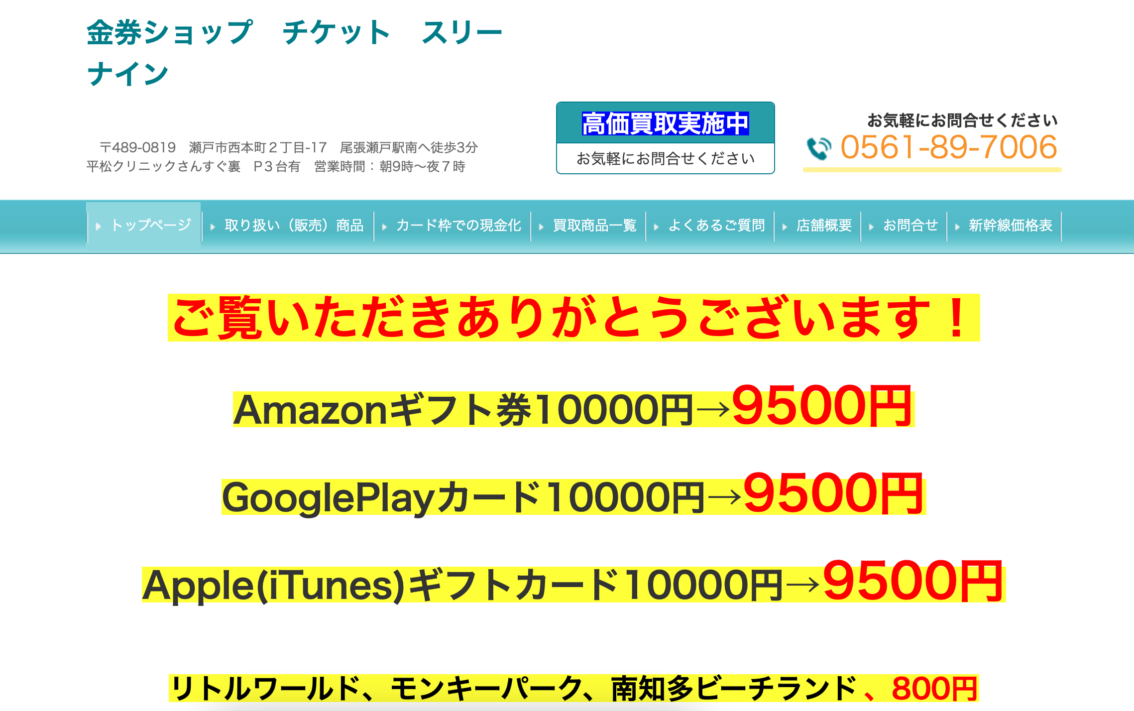 扱っている金券はかなり多く、Appleギフトカードはもちろん新幹線回数券やテレフォンカードなど幅広く買い取ってもらえます。