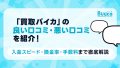 一方で、「買取バイカ」のようにオンラインであれば家賃や人件費が少ない分、レートも高く手数料もかかりません。