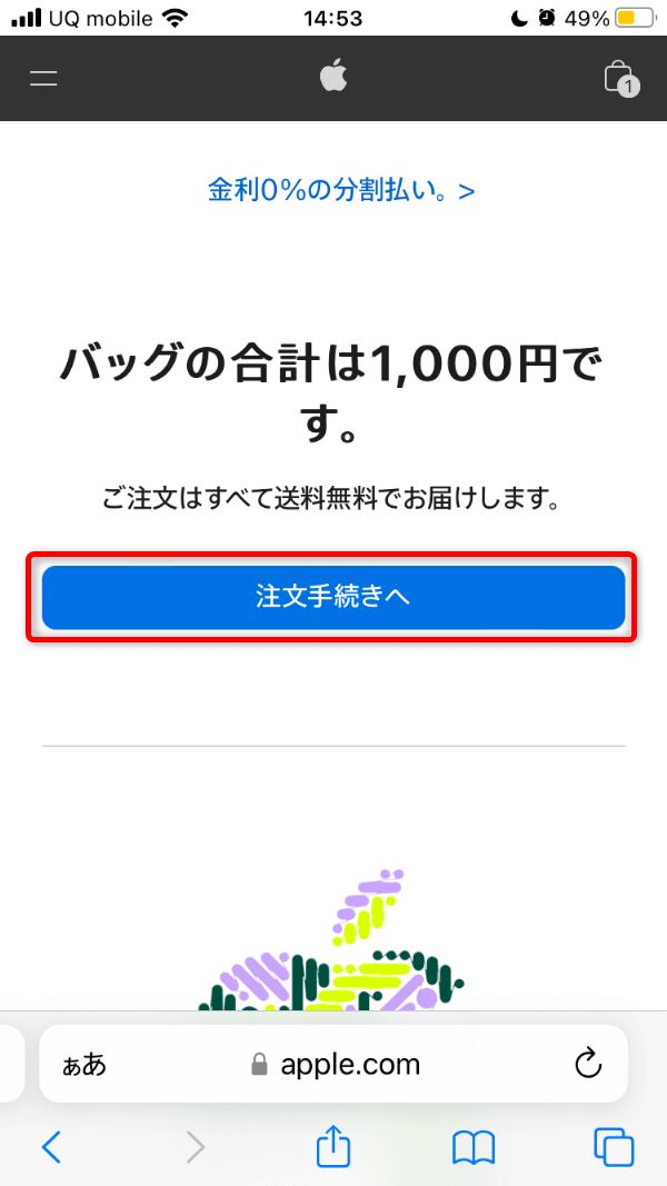 「注文手続きへ」をタップ。