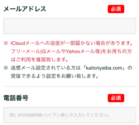 ④メールアドレス・電話番号・銀行口座(本人名義)などを入力